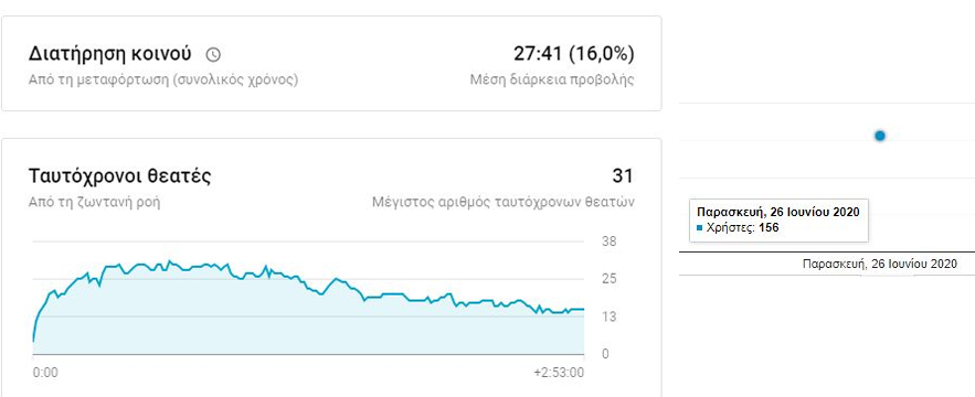 Η προβολή του Webinar έγινε μέσω της νέας ανανεωμένης ιστοσελίδας της Ελληνικής Ανδρολογικής Εταιρείας. Συνολικά την ημέρα του σεμιναρίου 156 χρηστές επισκέφτηκαν την ιστοσελίδα με μέγιστο αριθμό ταυτόχρονης σύνδεσης τους 31 χρήστες.