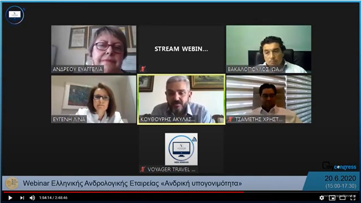 Το πρώτο Webinar της Ελληνικής Ανδρολογικής Εταιρείας με τίτλο «Ανδρική Υπογονιμότητα» , πραγματοποιήθηκε την Παρασκευή 26 Ιουνίου 2020.