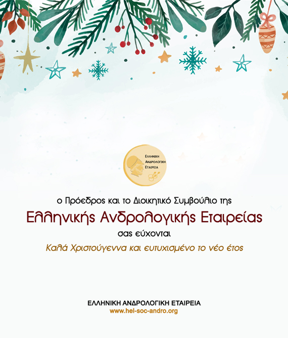 Το 2ο Μάθημα της Ελληνικής Ανδρολογικής Εταιρείας με τίτλο «ΟΞΕΙΔΩΤΙΚΟ STRESS ΣΤΗΝ ΑΝΔΡΟΛΟΓΙΑ» θα πραγματοποιηθεί διαδικτυακά την Παρασκευή 13 Ιανουαρίου 2023 (Ώρα: 15:00-17:00)