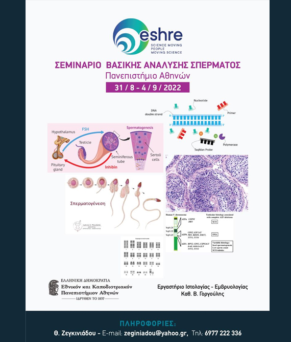 Το τμήμα Ανδρολογίας της Ευρωπαικής Εταιρείας για την Ανθρώπινη Αναπαραγωγή και Εμβρυολογία (SIGA – ESHRE) διοργανώνει σεμινάριo για την Βασική Ανάλυση Σπέρματος.